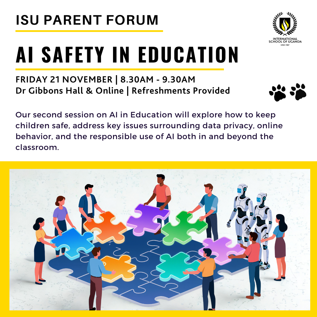 The next parent session, “AI Safety in Education,” will take place on Friday, 21 November. This forum will explore how we can keep children safe as AI becomes more integrated into learning tools and platforms, addressing issues such as data privacy, online behaviour, and the responsible use of AI both in and beyond the classroom.