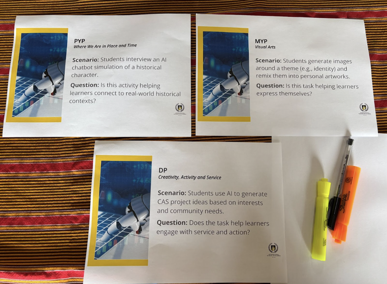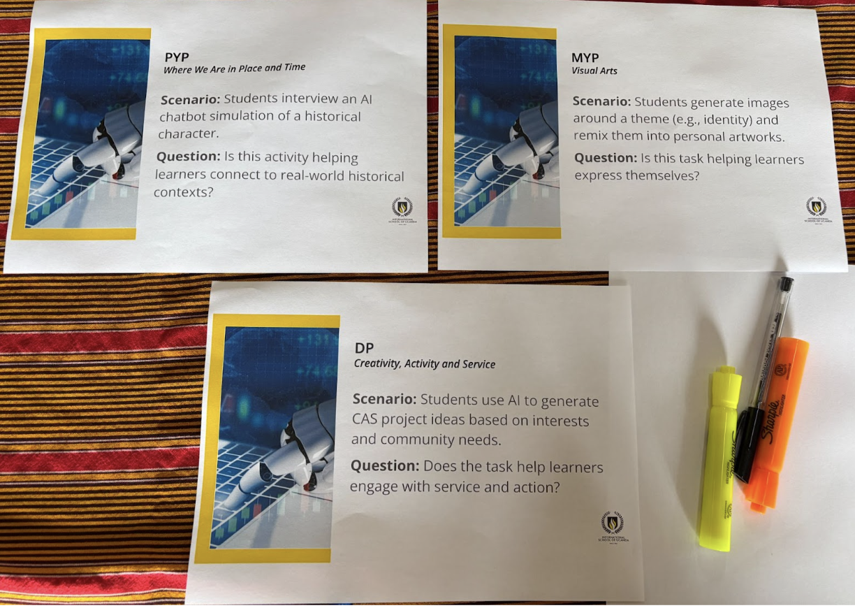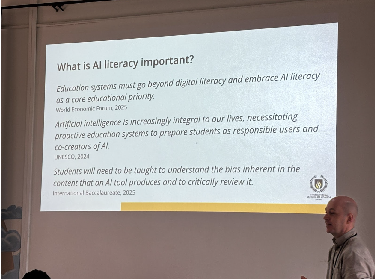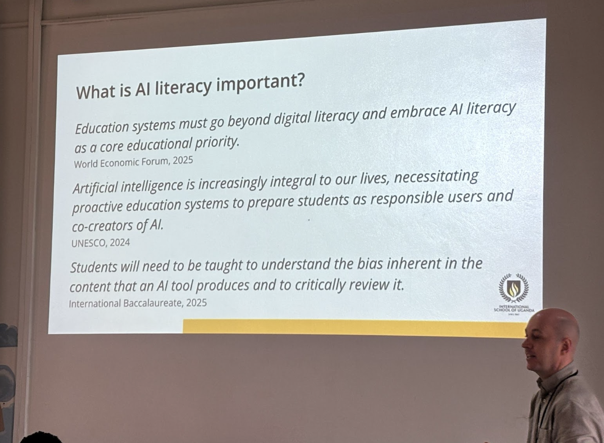 Together, we explored why AI literacy is essential, not only to prepare students for future careers but also to help them navigate ethical, safety, and bias-related challenges in a world increasingly shaped by technology. Quotes from the World Economic Forum, UNESCO, and the International Baccalaureate (IB) reinforced the global consensus on the importance of AI literacy, even amidst differing opinions about AI itself.
