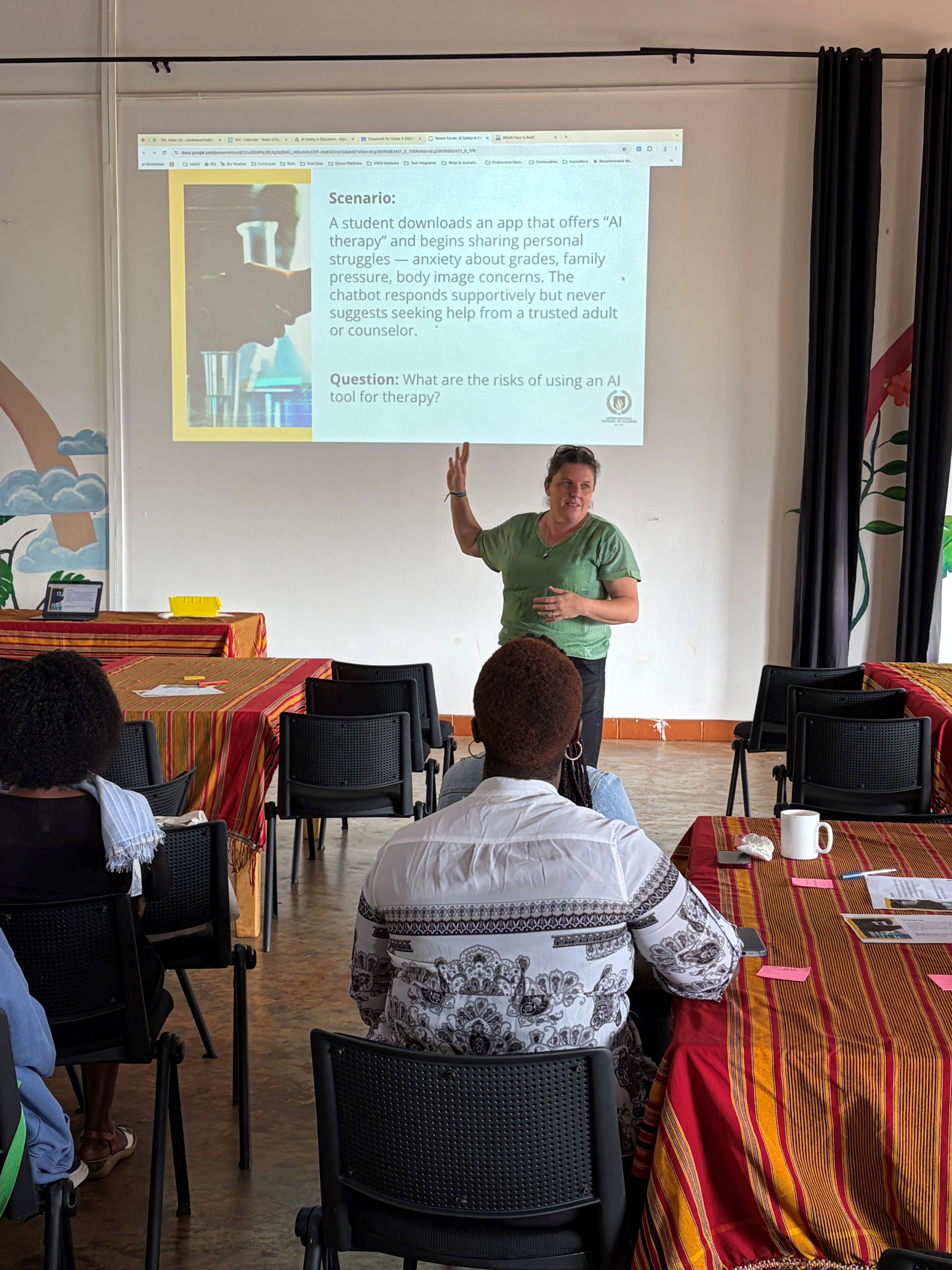Parents then explored a collection of real-world scenarios illustrating how AI intersects with social and emotional wellbeing. Discussion topics included: