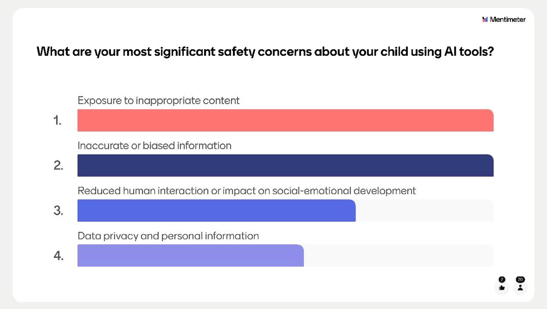 Using a live Mentimeter poll, we gathered feedback from parents on several important questions about AI safety:
